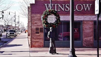 One cannot visit Winslow without indulging in standing on a corner. This activity has proved so popular since the Eagles released "Take It Easy" decades ago that the city created a "Standing On the Corner" park, if a short section of sidewalk and street can merit that designation. There's a statue of a guy with a guitar (I have no idea if it's supposed to represent anyone in particular), a lot of bricks with people's names on them (donors to the park), and a flatbed Ford truck. The S.O. and the Kid both indulged in having their photos taken; I passed. A lifetime of hearing "You look so much better than your photos!" taught me a long time ago that cameras are not my friend.